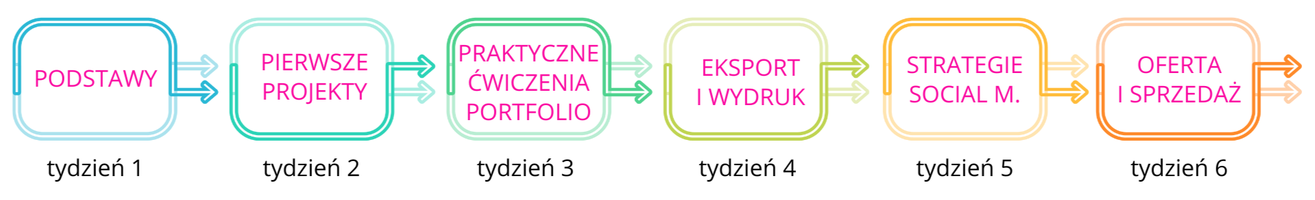 Dołącz do 6-tygodniowego programu projektowania graficznego w Canva oraz inspirującej społeczności twórczyń. Wzbogać wachlarz swoich umiejętności i przekształć je w realne źródło dochodu. Zyskaj niezależność, o jakiej zawsze marzyłaś.